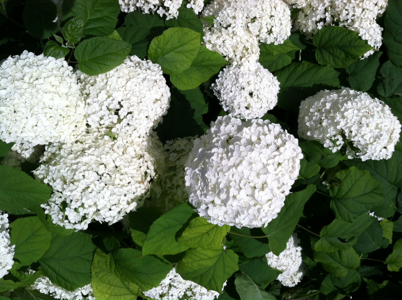 The hydrangeas are putting on a beautiful show this summer. The large white-flowering perennial thrives in cool, moist weather, which we have been enjoying for the most part this summer.