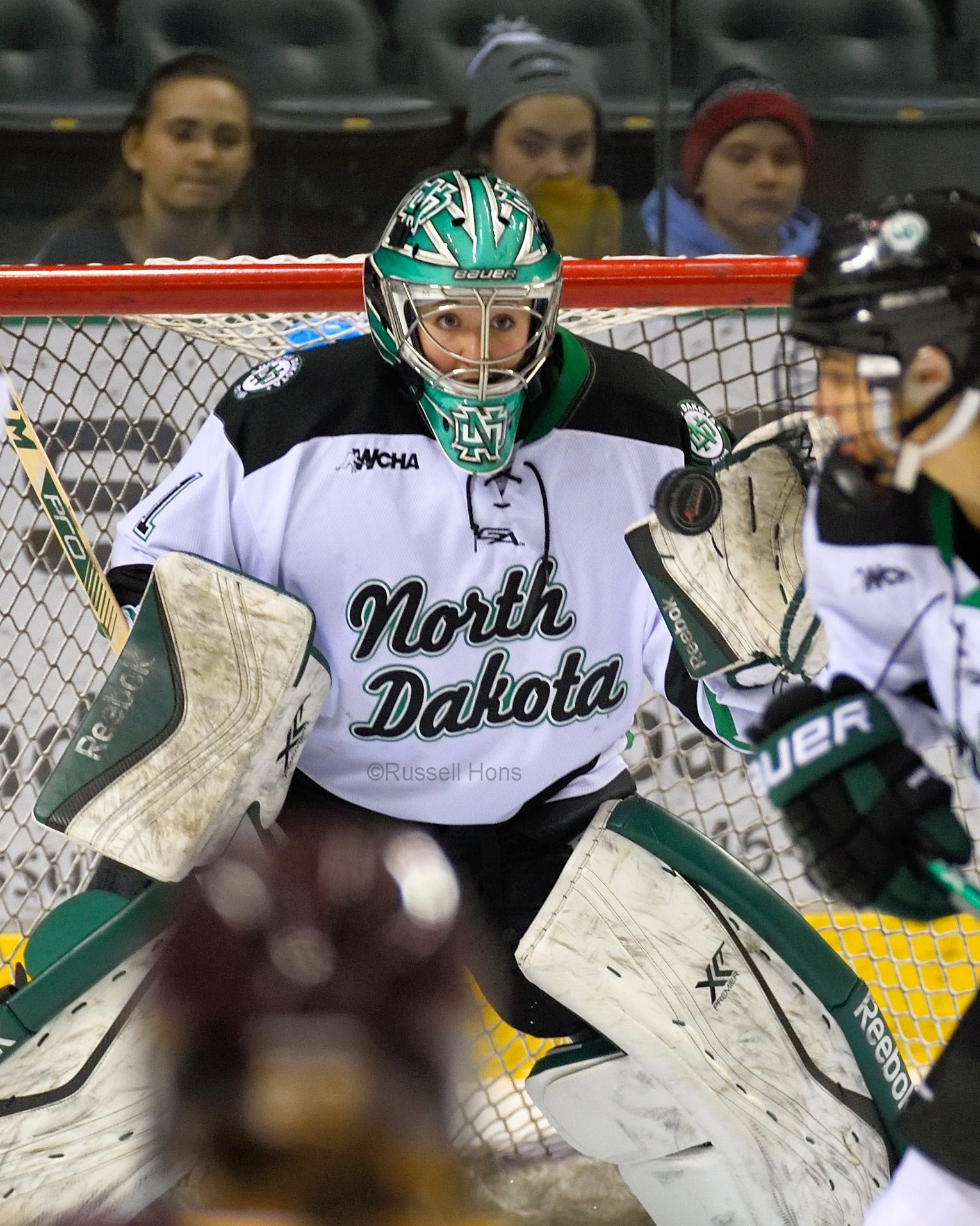 The No. 7 University of North Dakota women’s hockey team, hoping for a weekend sweep, dropped a 1-0 Western Collegiate Hockey Association decision to the University of Minnesota-Duluth on Saturday night in Ralph Engelstad Arena. The Fighting Hawks dropped to 8-4-2 (6-4-2-1 WCHA) on the season, while Minnesota Duluth improved to 5-9-0 (3-7-0-0 WCHA) with the series split. The loss is only the second in the last 14 games against Minnesota-Duluth. The game’s only goal was scored by Michelle Lowenhielm about midway through the third period. The Fighting Hawks outshot Minnesota Duluth, 32-22 but could not solve Bulldogs goaltender Maddie Rooney. UND goaltender Shelby Amsley-Benzie finished with 21 saves, including 15 through the first two periods.
