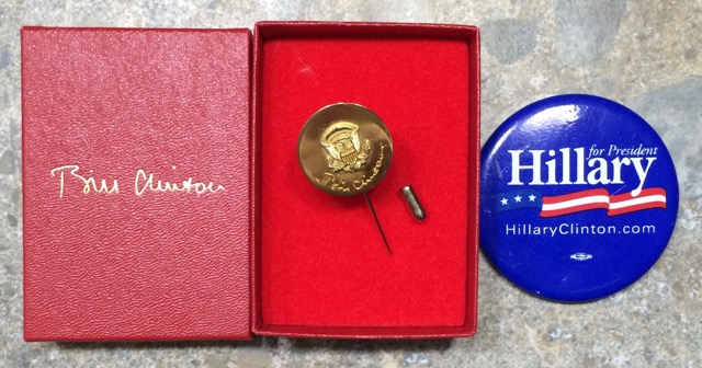 My “reward” was a Bill Clinton brass stick pin (see photo) in a red box with Bill Clinton on the top.