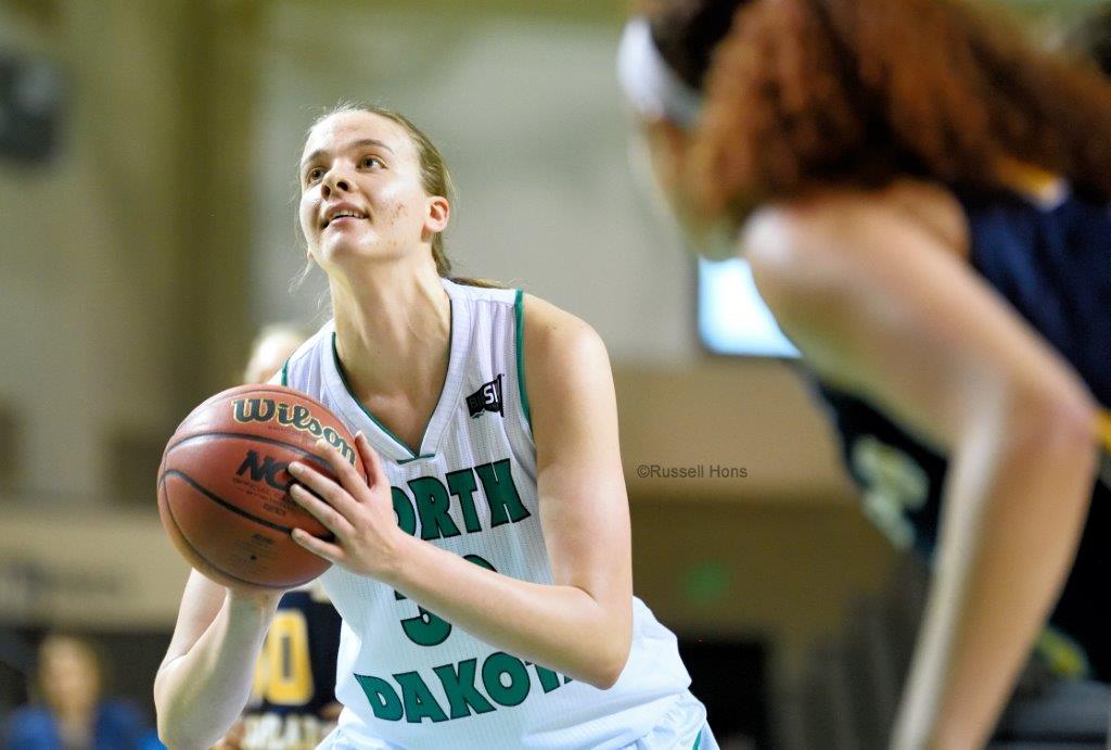 Junior Stephanie Smith had one of her biggest games as a University of North Dakota women’s basketball player Saturday night, recording her first career double-double with 11 points and 11 rebounds as the Fighting Hawks edged the Big Sky Conference foe University of North Colorado 54-51 in Betty Engelstad Sioux Center. UND, 5-4 in the BSC and 9-11 overall, grabbed its fourth-consecutive win to move over the .500 mark in Big Sky play for the first time this season. Northern Colorado dropped to 4-5 in the BSC and 9-10 overall. Makailah Dyer led UND with 13 points and added six rebounds and five assists. UNC was paced by Savannah Smith, who scored 15 points. Check out more photos from Russ Hons here.