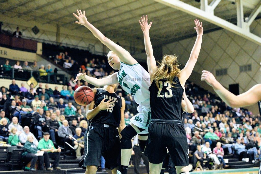 The University of North Dakota women’s basketball team saw its winning streak come to an end at seven games as Big Sky Conference opponent University of Idaho handed the Fighting Hawks a 65-59 defeat Saturday in Betty Engelstad Sioux Center. The Vandals, 18-7 overall and 10-3 in the conference, used a 23-12 run in the third quarter to erase a six-point UND halftime lead. Leading the Fighting Hawks was Samantha Roscoe, who scored 12 points while adding four rebounds. Coming off the bench, freshman Jill Morton scored 10 points and added four rebounds, four assists and three steals. Lexi Klabo also came off the bench, scoring 11 points with four rebounds and a block. UND, 12-12 overall and 8-5 in the Big Sky, returns to action Saturday, traveling to Northern Colorado. Check out more photos from Russ Hons here.