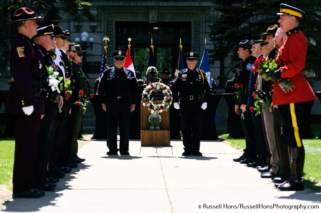 Law enforcement officials from across the Red River Valley gathered in Grand Forks on Tuesday for the sixth annual North Valley Police Week Memorial Service that honored the 44 fallen officers from the area who gave their lives in service over the past several decades. Photographer Russ Hons was there to record the service, which was held outside the Grand Forks County Courthouse. At the service, the names of the fallen heroes were read aloud, followed by the ringing of a bell and rose placed atop a uniform from each officer’s department. Check out more photos from Russ Hons here.