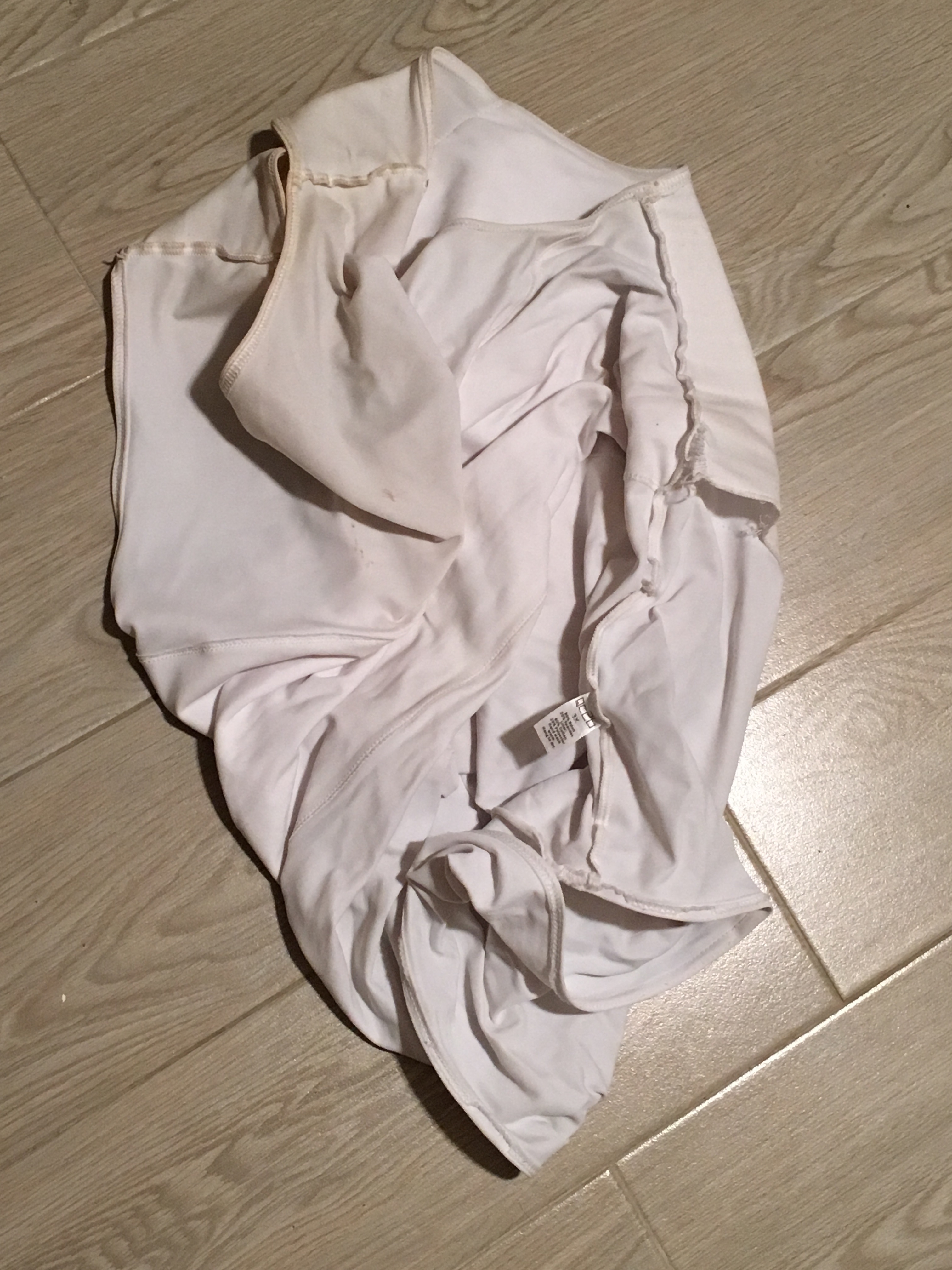 As the binder awkwardly escaped my head, I swung it in circles above me and danced like John Travolta (or so I envisioned). Then, threw it on the floor triumphantly. But I quickly picked it back up, squinting to see the minuscule drops of blood, carefully examining the rubbery soft, sandpaper-like mix of fabric that made the garment so mysterious to me. The words, “How far I have come!” seem to leap from my head.