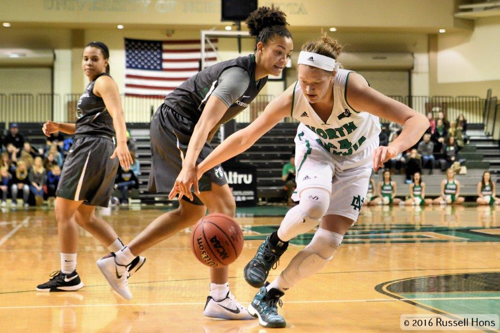 The University of North Dakota women’s basketball team won its Big Sky Conference opener Thursday night in Betty Engelstad Sioux Center by defeating Portland State University 65-61 before 1,435 fans. The Fighting Hawks (6-6) were led by Makailah Dyer, who scored a team-high 18 points. Joining her in double figures for UND was Fallyn Freije with 13 points and a career-high-tying nine rebounds. Bailey Strand had three triples (9 points) and a career-high five steals. Leading PSU (6-7, 0-1) was Sidney Rielly with 27 points and Courtney West with 14. North Dakota’s Leah Szabla missed her third straight game with an illness. UND returns to action at 2 p.m. Saturday when it hosts Sacramento State University in the Betty. (Check out more photos from Russ Hons here.)