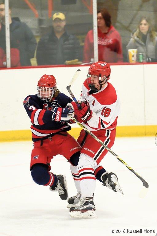 Grand Forks Red River’s boys hockey team stayed perfect against Bismarck this holiday season, defeating Century 9-1 on Friday afternoon in Eagles Arena in Grand Forks. On Thursday, the Roughriders (7-1) defeated Bismarck High 7-1. Braden Costello led Red River against the Patriots, scoring three goals and adding two assists. Also scoring for the Riders were Luke LaMoine with two goals and Mason Salquist, Riley Thingvold, Matt Clauson and Reed Turner with one each. Isaiah Thomas scored the lone Century goal. Adam Van Raden stopped 17 shots in goal for Red River, while Cooper Leininger and Matt Schmidt combined for 26 saves for Century (6-3). (Check out more photos from Russ Hons here.)