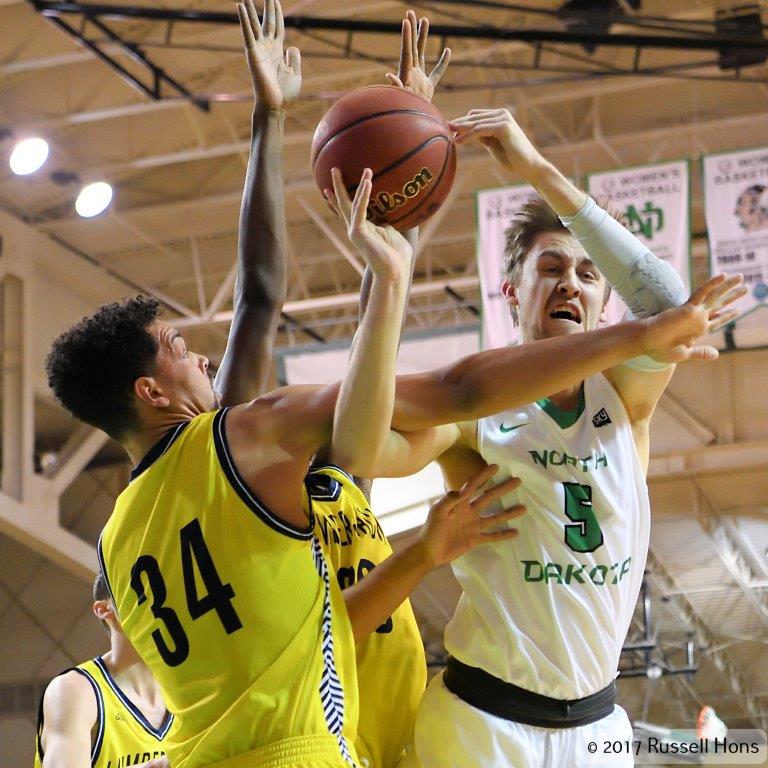 Quinton Hooker scored a game-high 20 points to lead the University of North Dakota men’s basketball team to a 68-63 win over Northern Arizona University in its Big Sky home opener Thursday in Betty Engelstad Sioux Center. Conner Avants added 17 points and equaled his career-high with nine rebounds to pace the Fighting Hawks (7-6, 2-1 BSC). Also in double-figure scoring for UND was Corey Baldwin with 10 points. The Lumberjacks (3-12, 0-2 BSC) were led offensively by Marcus DeBerry, who scored 19 points. UND wraps up its first Big Sky homestand Saturday against Southern Utah. (Check out more photos from Russ Hons here.)