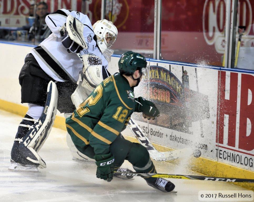 Fargo Force dropped a 3-1 United States Hockey League game to the Sioux City Musketeers on Friday night in Schools Arena in Fargo. Hank Crone scored the lone goal for the Force, who dropped to 16-11-2. Carson Vance, Solag Bakich and Brian Rigali (empty net) scored for Sioux City (19-6-3). Matt Murray had 23 saves in goal for Fargo, while Sioux City’s Matiss Kivlenieks stopped 34 shots. (Check out more photos from Russ Hons here.)