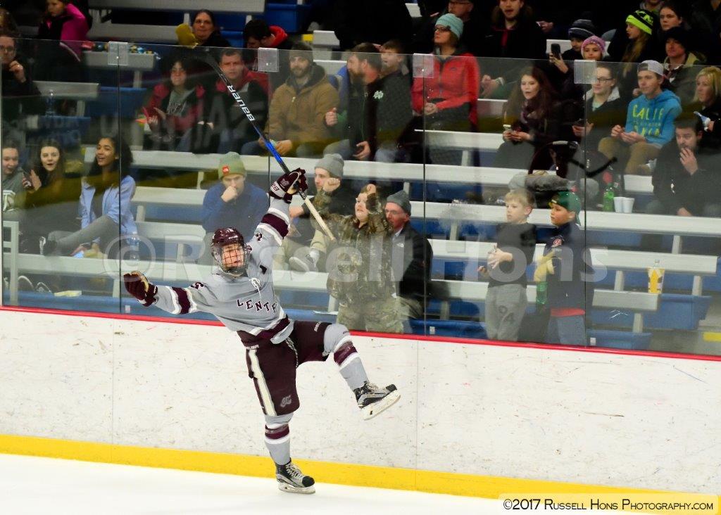 Grant Johnson scored three shorthanded goals and added two assists to lead Grand Forks Central to a 7-2 high school hockey win over crosstown rival Grand Forks Red River on Tuesday night in Purpur Arena in Grand Forks, clinching the Knights’s first Gambucci Cup since 2011. Tyrese Murph added two goals and Bo Bjorge and Judd Caufield chipped in one apiece as Central ran its undefeated record to 17-0. Jack Tannahill and Mason Salquist scored for the Roughriders, who fell to 16-2, both losses to Central. Nick Bucklin stopped 27 shots for the Knights, while Nate Bradbury had 30 saves. (Check out more photos from Russ Hons here.)