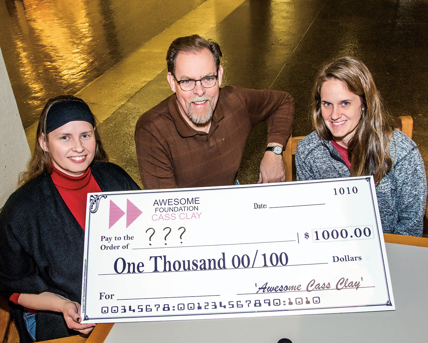 The Awesome Foundation thrives on that sense of adventure. While the 10 founding F-M trustees aren’t out looking to add to their number, they welcome interest from others who are intrigued. They also stress their doors are wide open to new proposals. To get started, go online to awesomefoundation.org and select “Cass Clay.”