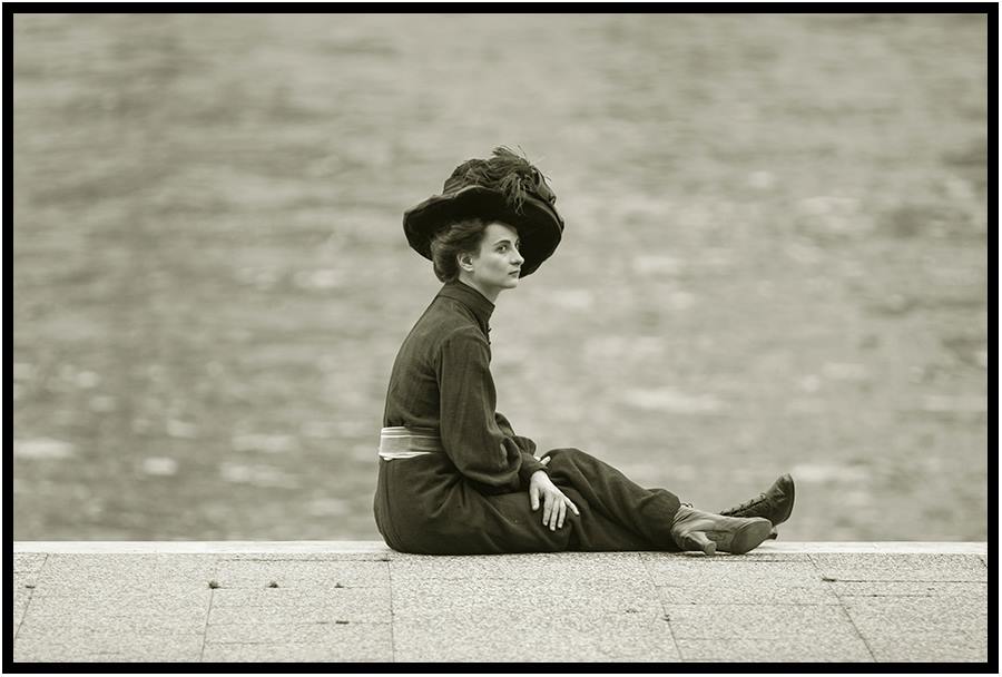 I took this picture May 31, 2005, of a movie actress taking a break during filming along the Seine River in Paris