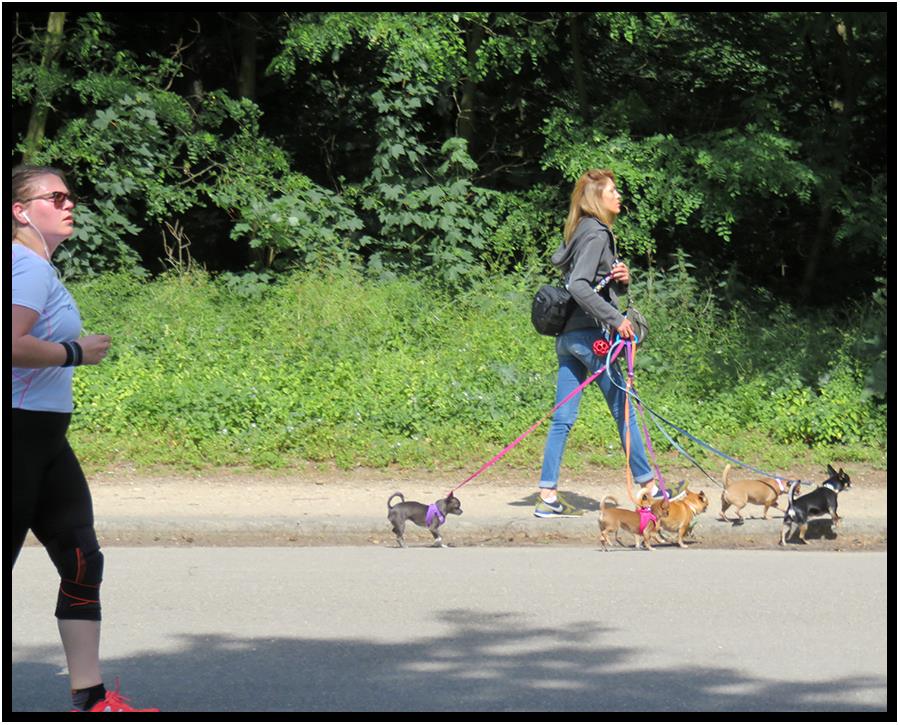 I shot this photo in Monday of a professional dog walker in the Bois du Boulogne, the large park on the edge of Paris, which figures in Marcel Proust’s novel, “A La Recherche Du Temps Perdu.”