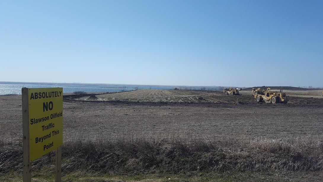This spring, an oil company named Slawson Exploration moved in beside the resort, and with its huge machinery, began clearing a 25-acre site at the top of the boat ramp, which will be home to an 11-well oil pad. The site is just a few hundred yards from the park and the homes in the community. Drilling could start there any day now.