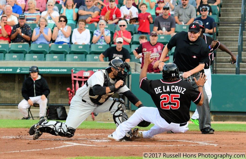 The Fargo-Moorhead RedHawks rode the pitching of Tyler Alexander to a 5-0 win over the Kansas City T-Bones on Tuesday night at Newman Field in Fargo, and photographer Russ Hons was there. Alexander allowed just three baserunners (one hit and two walks) while striking out 13 batters in the American Association game. Third-baseman Josh Mazzola drove in three runs with a single and two-run homer for the RedHawks. (Check out more photos from Russ Hons here.)