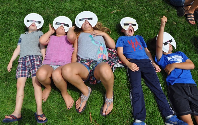 Many parents attended the free event with their children, who had made pinhole boxes to view the eclipse.