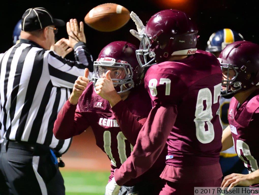 Grand Forks Central closed out its 2017 high school football season on a winning note, defeating Fargo North 28-27 on Wednesday night at Cushman Field in Grand Forks. A 5-yard touchdown pass from Zach Murphy to Caleb Johnson and and the extra-point kick by Lucas Kanta with 3:03 left in the game gave the Knights the win. Murphy finished the game with three touchdown passes and one rushing to lead the Knights. He ran for 161 yards, going over the 1,000-yard mark for the season. Both Central and North ended their season with 3-6 records. (Check out more photos from Russ Hons here.)