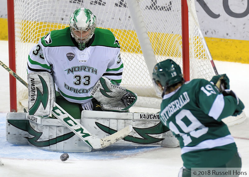 The University of North Dakota men’s hockey team skated to a 2-2 tie with Bemidji State University on Saturday night in Ralph Engelstad Arena to close out its nonconference schedule. Nick Jones and Christian Wolanin scored goals for the Fighting Hawks (12-6-6), while Dillon Eichstadt and Leo Fitzgerald scored for the Beavers (11-7-6). Cam Johnson had 18 saves in goal for UND, and Michael Bitzer stopped 29 shots for the Beavers. (Check out more photos from Russ Hons here.)