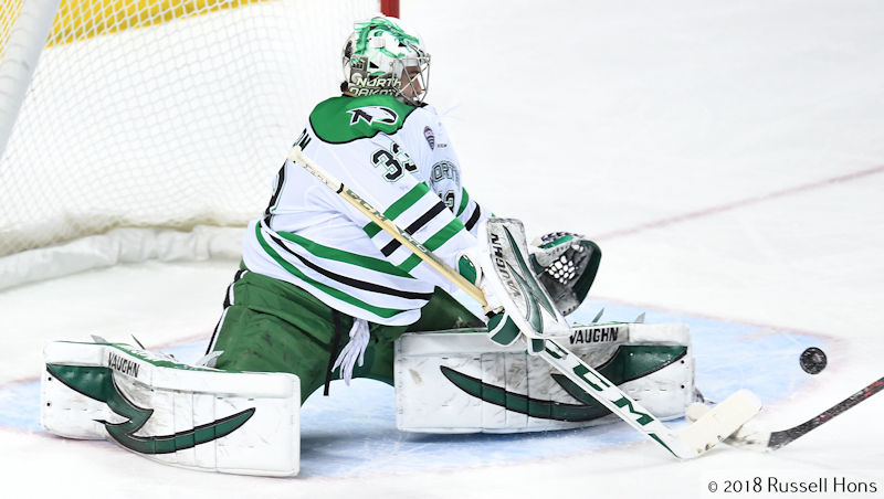 Grand Forks, ND; February 9, 2918; The #4 University of North Dakota men’s hockey team opened the 2018 NCHC playoffs by hosting #5 Omaha at Ralph Engelstad Arena. UND won 4-0. Photo by Russell Hons