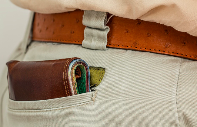 But he did slip away with Russ’s nice tan slacks, belt and — worse — the wallet in its pocket.