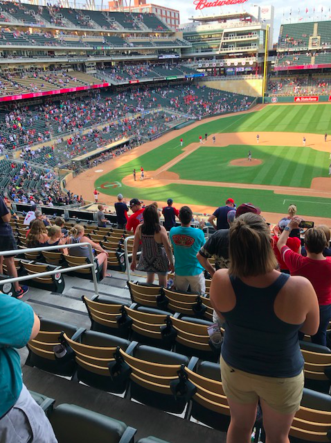 Jim was immediately impressed with Target Field’s amazing amenities. Countless food options include a new “Bat and Barrel” restaurant with big screens, numerous locations to sit in air conditioned comfort and avoid the high heat index, plus endless great spots to stroll around the stadium and still get a clear view of the day’s action. In fact, the Twins have done such an efficient job of appealing to the casual fan, few are sitting in the stands. With so many choices other than baseball, it also appears debatable how many are paying attention to the action on the field.