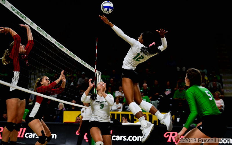 Grand Forks, ND Aug 30, 2018 University of North Dakota Volleyball vs Eastern Washington. North Dakota won the match 3-0. Photo by Russell Hons