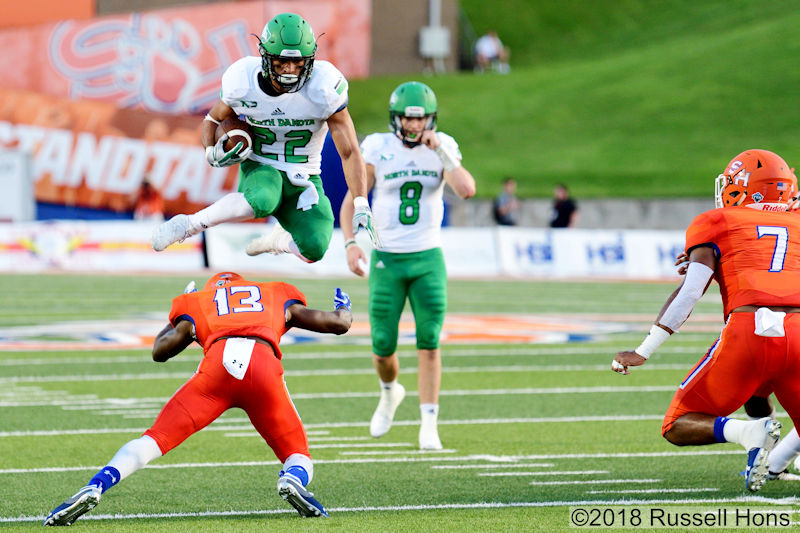 September 15, 2018: Taken during a NCAA football game between the University of North Dakota Fighting Hawks and Sam Houston State Bearkats at Elliott T. Bowers Stadium in Huntsville, Texas. North Dakota defeated Sam Houston State 24 -23. Russell Hons