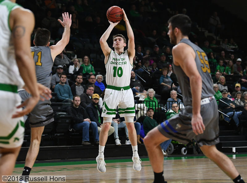 Anon Moody scored a career-high 21 points and Marlon Stewart posted a double-double but that wasn’t enough as the University of North Dakota men’s basketball team dropped a 84-73 Summit League decision to Purdue University Fort Wayne on Saturday afternoon in Betty Engelstad Sioux Center. Stewart scored 18 points and added a career-best 10 assists for the Fighting Hawks (6-8 overall, 0-1 Summit). Kienan Walter chipped in 14 points and had a team-high eight rebounds. The Mastodons (9-7 overall, 1-0 Summit) were led by Kason Harrell, who had a game-high 22 points, and John Konchar, who scored 18 points and added 13 rebounds. The Fighting Hawks hit the road next week, traveling to Oral Roberts on Thursday and Denver on Saturday. (Check out more photos from Russ Hons here.)