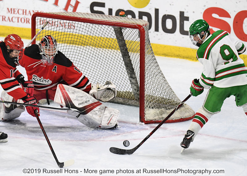 January 3, 2019 Red River Roughriders at East Grand Forks Greenwave boys hockey. East Grand Forks won 2-0. Photo by Russell Hons