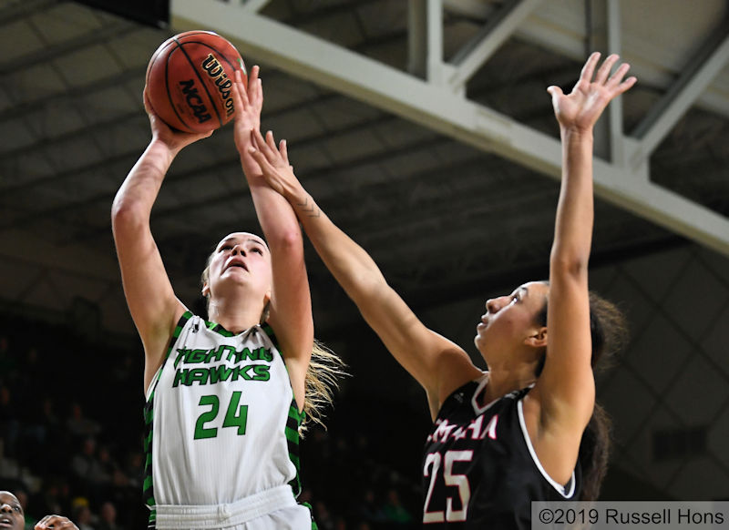 The University of North Dakota women’s basketball team, despite playing without the Summit League’s leading scorer, defeated the University of Nebraska-Omaha 68-57 Wednesday night in Betty Engelstad Sioux Center. With Lexi Klabo sidelined because of an injury, the Fighting Hawks (8-9 overall, 3-1 Summit), received big efforts from Julie Fleecs and Melissa Leet at the post position. Fleecs had a game-high 14 points, and Leet added nine points, six rebounds, four blocked shots and three assists. Alaina Jarnot also chipped in 13 points, five assists and four rebounds in the win. Omaha (6-10 overall, 1-3 Summit) was led by Elena Pilakouta, who had 13 points and eight rebounds, and Claire Killian, who added 10 points, five rebounds and four steals. UND returns to action Sunday, when it hosts Western Illinois University. (Check out more photos from Russ Hons here.)