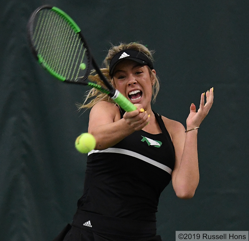 The University of North Dakota women’s tennis team won its fourth match of the season with a 7-0 rout of visiting Gustavus Adolphus College on Saturday morning in Choice Health & Fitness. The Fighting Hawks (4-3) received singles wins from Isa Sullivan, Kaede Amang, Preethi Kasilingam, Allie Ochotorena, Zahra Finnigan and Alex Revenig. The doubles teams of Amano-Masha Lobanova, Kasilingam-Ochotorena and Mary Wessman-Jaylee Yasunaga also won their matches. North Dakota returns to action Saturday against the University of Nebraska in Lincoln. (Check out more photos from Russ Hons here.)