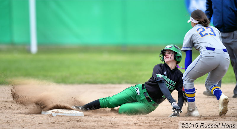 April 28, 2019 University of North Dakota softball played South Dakota State University in Grand Forks, ND. UND won 7-1. Photo by Russell Hons