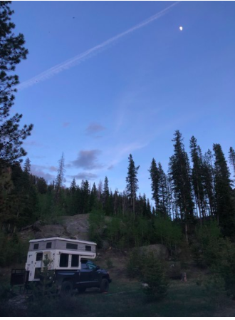 To all of you who are following my little journey in search of America (or a bit of it), I am having a splendid evening. I arrived at this remote and understated camp, not far from Leadville, Colo., about 2 p.m. I did the minimum to set up camp. Only one other couple is here. They have a pickup on which is an iron frame, on top of which, level with the top of the pickup cab, is their tent. They have a ladder, aluminum, to get up into the tent. It took them about 75 minutes to set up. This seems like something the husband thought of and the long suffering wife went along. She probably hates it.