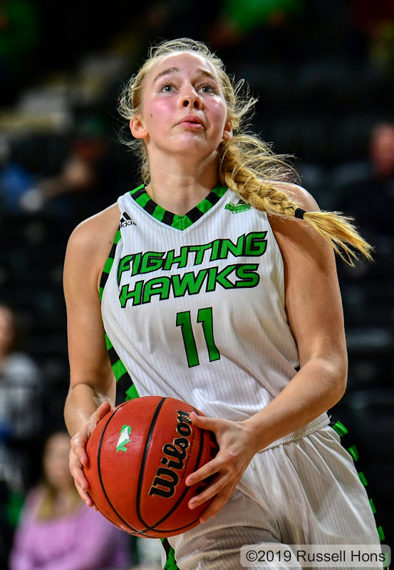 Freshmen Kacie Borowicz and Lilly Keplin scored 19 and 15 respectively to lead the University of North Dakota women’s basketball team to a 98-19 exhibition win over Concordia College on Thursday in Betty Engelstad Sioux Center. Julia Fleecs added 18 points for the Fighting Hawks, who travel to Arizona for a Thursday game against the 2019 WNIT champion Wildcats. (Check out more photos from Russ Hons here.)
