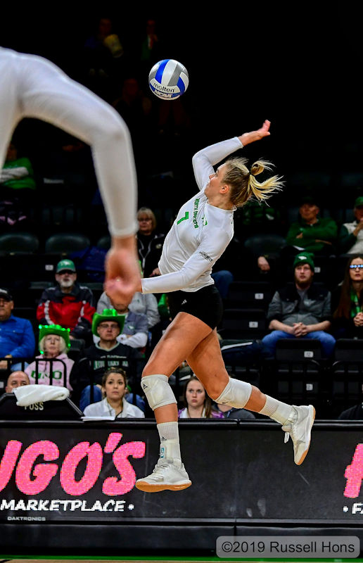 November 15, 2019 a NCAA volleyball game between Oral Roberts University and North Dakota at the Betty Engelstad Sioux Center in Grand Forks, ND. Photo by Russell Hons