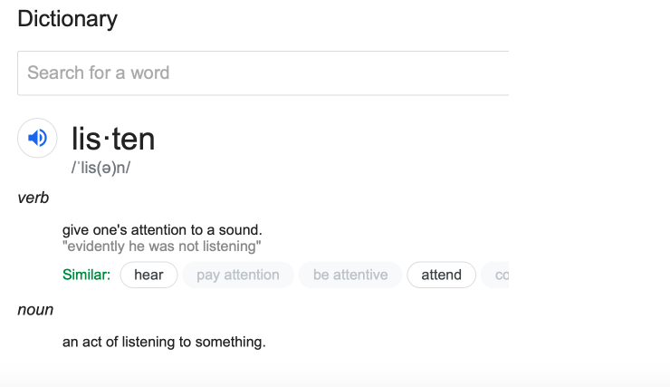 The verb “listen” means to give one’s attention to a sound. As a noun, it is an “act of listening” to something. Especially for the past few decades and even the past few centuries, it occurs to me that there hasn’t been a lot of listening taking place.