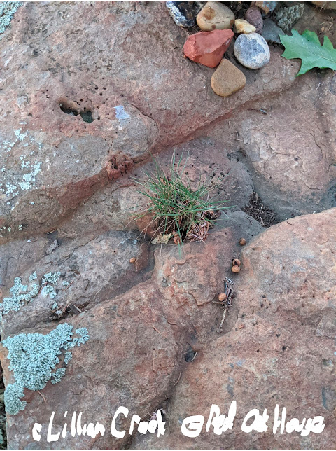 The above photo (taken with a Google Pixel 2) is of a prairie boulder in the heart of the shade garden at Red Oak House. Against all odds, the lichen and a tiny patch of short-grass prairie endure in the center of the boulder, surrounded by a sea of shade-loving perennials, exotics and a North Dakota city. The tiny acorns are from the Red Oak tree above. It is but one place in the yard where I often sit to rest from my labors or remember my place in the universe or watch the busy-ness of my neighborhood. Any mistakes along the journey are mine. A dear and wise friend tells she is pretty sure the universe forgives me.