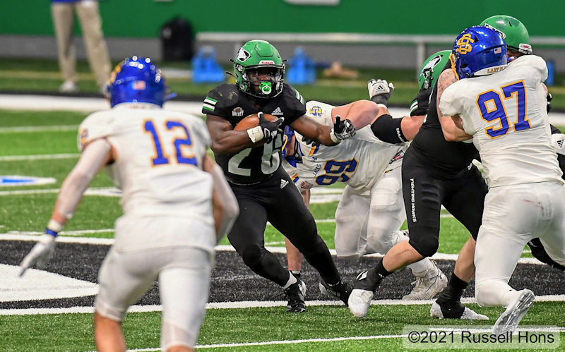 February 27, 2021: a NCAA FCS football game between the South Dakota State Jackrabbits and the University of North Dakota Fighting Hawks at the Alerus Center, Grand Forks, ND UND defeated SDSU 28-17. Photo by Russell Hons