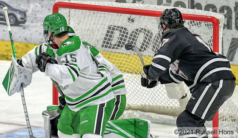 March 5, 2021 NCAA men’s hockey game between the Omaha Mavericks and the University of North Dakota Fighting Hawks at Ralph Engelstad Arena in Grand Forks, ND. Photo by Russell Hons