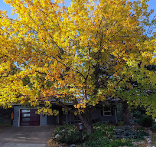 Back in the Little Missouri River Valley two weeks later to spend time with my sisters and lead a Badlands Conservation Alliance hike to the Petrified Forest, now the ash trees were bare, but the cottonwoods were glorious, glowing yellow in the blue-sky fall days. Our Red Oak House cottonwood sapling lost its last leaf on Sept. 29, yet as I write this, I can look out my office window at my neighbor’s full-sized cottonwoods resplendent in shades of saffron.
