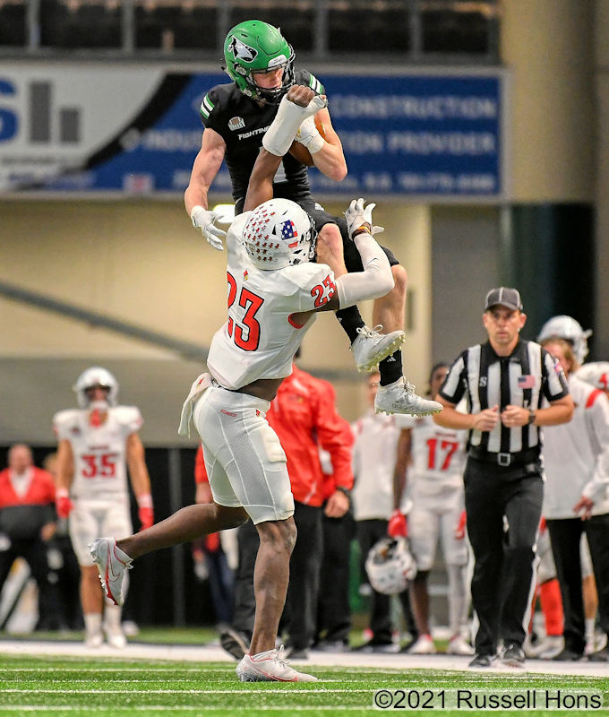 Backup quarterback Quincy Vaughn threw a 3-yard pass to Gavin Ziebarth with 4:26 left in the ball game to lift the University of North Dakota football team to a 14-7 Missouri Valley Conference win over Illiinois State University on Saturday afternoon in the Alerus Center. The Fighting Hawks (5-5 overall, 3-4 MVFC) were led by starting quarterback Tommy Schuster who was 19-for-25 passing for 233 yards and a touchdown pass to Jake Richter. On ground, Otis Weah ran for 80 yards. The Redbirds (4-6 overall, 2-5 MVC) scored on a 28-yard pass from Jackson Waring to Brett Spaulding.bCole Mueller had 25 carries for 90 yards rushing for ISU. UND closes out the regular season next weekend at South Dakota State in Brookings. (Check out more photos from Russ Hons here.)