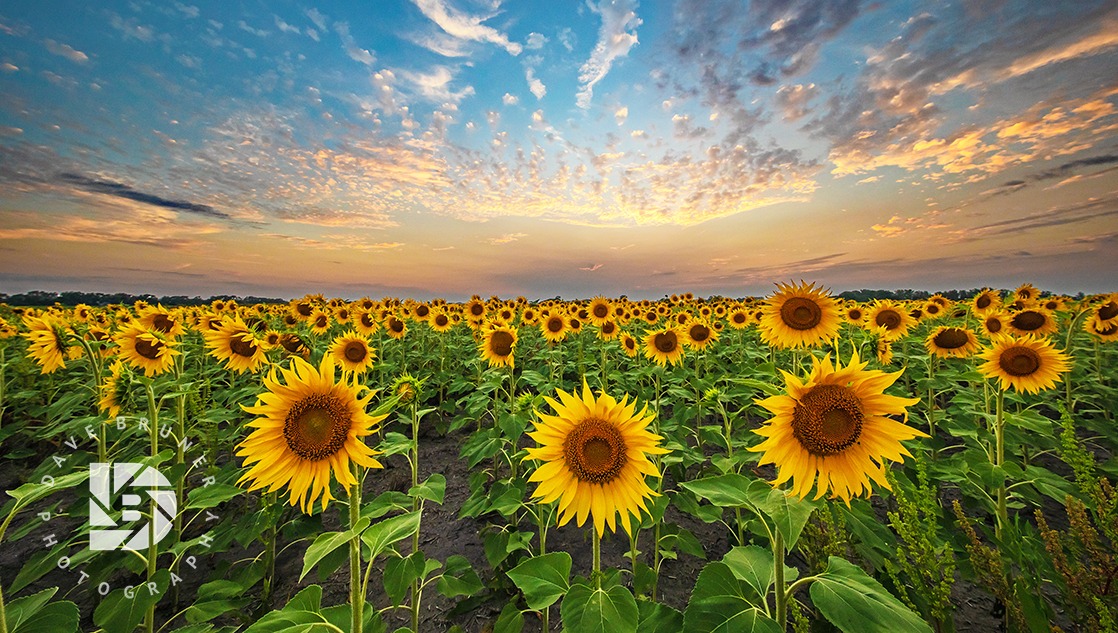 Dave and his wife, Sheila, went out a few nights this past week to this sunflower field to capture some sunset images as the flowers were in full bloom. “I was lucky to have some nice cloud formations in the sky the times we were out there.
