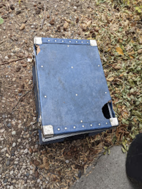 So that container went out in the garbage, replaced by  …  a third (and final) metal cooler. Complete with a latch.