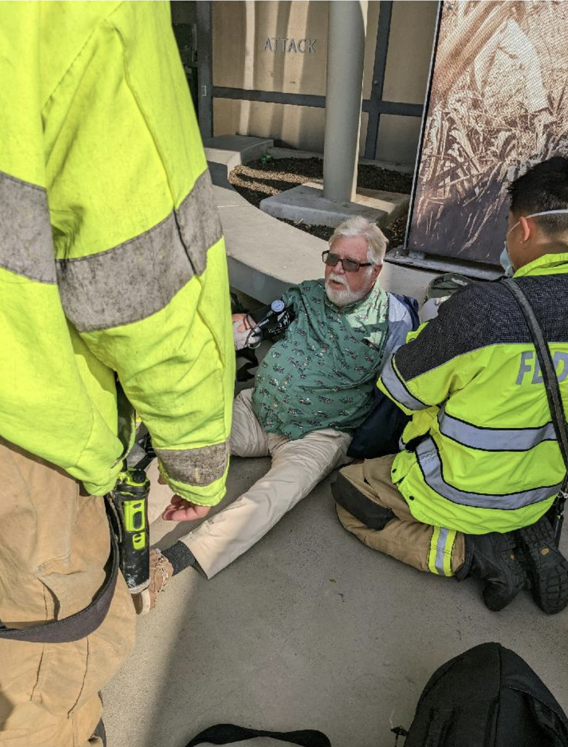 Lillian felt my forehead and said, “You’re burning up.” She went and found a park ranger who just happened to have some medical training. He confirmed a spike in temperature and called an ambulance.